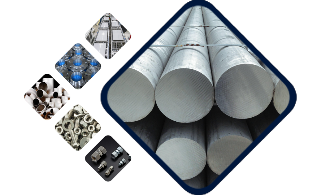 Pipes, Tubes, Sheets, Plates, Fasteners, Round Bars, Flanges, Pipe Fittings, Nuts, Bolts, Stud Bolts, Washers, Forgings, Coil, Channels, Angles, Valves, Forged Fittings, Tube Fittings, Electrodes, Dairy Fittings, etc.